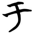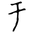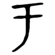 ;隸書承自甲文,而豎筆或傾側左折。楷書承自隸書,中筆直豎鉤起而定體。在六書中屬於象形。假借為虛詞,乃增益「竹」作「竽」,存其本義。