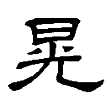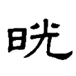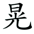 此字始見於篆文,有光明意。從日、光聲,在六書中屬於形聲。唯聲符亦兼具表義功能。《說文》:「晃,明也。」段注:「晃者,動之明也。凡光必動,會意兼形聲字也。」隸、楷字形均承篆文來。