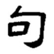 勾為句的俗寫,偏旁本從口,為區分句字在「章句」與「句曲」音義用法的差別,乃以「句」字表示「章句」義,又以俗寫「勾」字表示「句曲」義;ㄐ聲,表示音讀,兼表糾結纏繞的意思,字形隸變為勹形。在六書中屬於形聲。