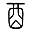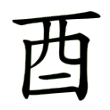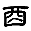 ,整體像酒罈的外形,和後世酒罈的樣子很近。細言之,即上像蓋,中像頸,下像有紋路的酒容和器底。戰國文字三例,和金文之形,大同小異,唯多了上蓋或酒容右側一兩道冗筆,不影響其音、義。篆文
