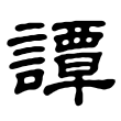 此字晚出,始見於隸書。隸書從言、覃聲,楷書同。字從「言」為義符,表示是與言語有關的動作;從「覃」為聲符,沒有兼義功能,依《說文》,「覃」字的本義為「長味也」,與「譚」義無關。在六書中屬於形聲。