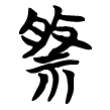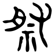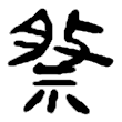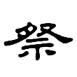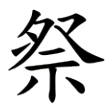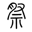 (祭)聲的形聲兼會意字。金文繼承這種後期構形,又因「又」、「攴」都與「手」的意思相關,有些金文和簡牘文字,用「攴」替換所從「又」旁,篆文、隸書、楷書則從金文構形。《說文‧示部》:「祭,祭祀也。從示,以手持肉。」本義為祭祀,從示、從又、從肉。在六書中屬於異文會意。