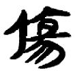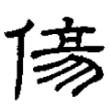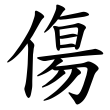 ,由「人」、「昜」二字構成。當是從人、昜聲。從人,示人之創傷。從昜,聲符,注明音讀。後例作