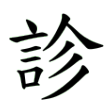 此字始見於戰國文字。戰國文字從言、㐱聲。篆文、楷書同。「診」的本義為醫者察看、徵驗,即看診、診療,必需用言語問診,因此「診」字從「言」表義;從「㐱」聲則沒有兼義功能,據《說文》,「㐱」的本義為「稠髮」,即「頭髮濃密」,這和「看診、診療」無關,因此「診」從「㐱」聲不兼義。但是,我們如果把「㐱」聲看成是「沴」聲的假借(或者看成「沴」省聲),那就兼義了。「沴」有惡氣、災病的意思,「看診、診療」就是要找出病人的「惡氣、災病」,因此「診」字從「沴」省聲應該有兼義的功能。在六書中屬於形聲兼會意。