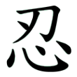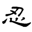 從金文到楷書,忍字都是從心、刃聲;以心表示與心境相關,以刃表示音讀。六書中屬於形聲。