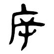 此字始見於戰國文字,從广、屰聲。广像屋脊和牆壁,本義是房屋;屰的甲骨文作「