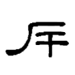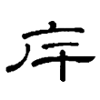 」,都以橫畫表示人的腰際,但其下還保留人的兩手和頭部。隸書有的保持「广」的形體,也有省形作「厂」的,但都將「屰」省變為「干」。至楷書則據隸書的「厂」形而改易筆勢作撇,其下又訛變為「