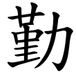 「勤」字,字形能拆解為從力、堇聲,屬於六書中的形聲字。「勤」本身具有勤勞之意,故從「力」以表達力量之執行。