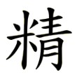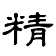 此字始見於戰國文字。戰國文字從米、青聲,有左右結構、上下結構兩種構形。秦文字始定形為左形右聲的「精」。《說文‧米部》:「精,擇米也。从米、青聲。」本義指經過揀選的純淨好米。從米,表示與稻米相關;青含有「美好」、「純淨」的意思,從青,表示音讀,兼表純淨、美好之義。在六書中屬於形聲兼會意。