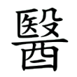 此字始見於戰國文字。戰國文字從殹、從酉,與篆文、隸書、楷書構形並皆相同。《說文‧酉部》:「醫,治病工也。从殹、从酉。殹,惡姿也,醫之性然得酒而使,故从酉,王育說。一曰,殹,病聲,酒所以治病也。」上下結構,從殹、從酉。從殹,段注以為「殹」為「疲極之聲」,從殹,表示病患發出之病聲;從酉,表示以酒治病,本義是為人治病。在六書中屬於異文會意。古代巫、醫不分,皆所以除疾,故醫字有時也從「巫」作「毉」。