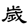 」,從左右兩止之「步」,以示步歲之意。金文「歲」承斧鉞形極少,大多從二止,篆文歲字寫作