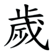」,應該是在「步以為歲」基礎上,省去一足,增月為形符以足義,表示歲乃積日月以成。《說文‧步部》云:「歲,木星也,越歷二十八宿,宣徧陰陽,十二月一次,从步、戌聲,律歷書名五星為五步。」「歲」字從步、戌聲。從步,表示步以為歲,推步之意;從戌,表示音讀,本義為木星,在六書中屬於形聲。大陸規範字作「岁」。