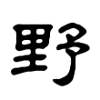甲骨文、金文從林、從土。從林,指草木;從土,指郊野的土地。表示長滿草木的荒郊野外。戰國楚系文字承甲骨文、金文字形作從林、從土;戰國秦系文字新增聲符,改為從埜、予聲,為《說文》古文所相承。篆文字形從里、予聲,從里也表示土地。隸書、楷書皆承篆文字形而來。在六書中屬於形聲。