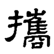 此字始見於篆文。篆文從手、巂聲。隸書、楷書同。「攜」字的本義為拿、提,這是手部的動作,因此從「手」表義;從「巂」聲不兼義,依《說文》,「巂」是一種鳥,就是子規鳥,又稱杜鵑,此義和「攜」無關。在六書中屬於形聲。