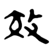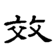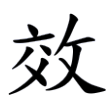 甲骨文字形從攴、交聲。從攴,指教導訓誡而言;交聲,聲兼義,交字本像人兩腳交錯之形,引申為相交錯之意。從攴、交聲,表示督責彼此相互模仿學習。從金文到楷書,皆承甲骨文字形而來。在六書中屬於形聲兼會意。