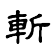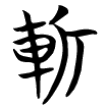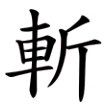 此字始見於戰國文字。戰國文字至楷書之構形,均為從斤、從車。「斤」是砍樹的斧頭,引申可為殺戮;「車」本是交通工具,後作為刑法之一,於此則取法車裂之意,故從車。在六書中屬於異文會意。大陸規範字作「斩」。