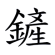 此字始見於篆文。篆文及楷書字形皆為從金、產聲。「金」為金粒,作為形符,表示義與金屬有關;「產」為生產,於此作為不示義的聲符,表示音讀。在六書中屬於形聲。大陸通行規範字作「铲」。