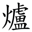 此字晚出,始見於楷書,從火、盧聲。從「火」,指用以燒火;「盧」表示音讀。在六書中屬於形聲。