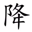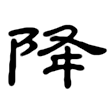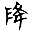 殷商甲骨文,作從阜、從二止倒形,示人由山阜步行下來,在六書中屬於異文會意。周金文字形承甲文,由多見的「降余多福」、「以降大福」、「上帝降懿德」等例,見周金文降字已習作降下意。戰國竹帛文字亦見降字,用意沿襲,但二倒止形筆畫調整已稍合成夅字,影響篆文。篆文降字誤理解從阜、夅聲,文字結構改為形聲字。隸、楷字形均承篆文而來。