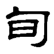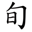 旬,甲骨文似虫屈曲,或像雲氣舒捲形,假借為旬。十日為一旬。金文增從日,理解為從日、勻聲,其後改為從勻省聲。在六書中屬於形聲。篆文誤從勹,《說文》古文則仍保留從勻聲符的原意。《說文》:「徧也。十日為旬。从勹日。」隸、楷字形均承自篆文。