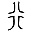 ,承金文第三例而來,因形變而中間兩側通道成了封閉的樣子,遂失其形。隸書二例,不肖篆文