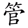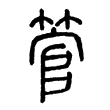 此字始見於篆文,從竹、官聲。從「竹」,指為竹製用品;「官」表示音讀。《說文》另收有重文作「玉」旁,應當也有以玉為材質製作的。隸書誤變從草頭。楷書從篆文來。在六書中屬於形聲。