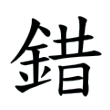 此字始見於戰國文字。自戰國文字至楷書字形皆為從金、昔聲。「金」為金粒,作為形符,表示義與金屬有關;「昔」為往昔,於此作為不示義的聲符,表示音讀。在六書中屬於形聲。大陸通行規範字作「错」。