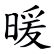 此字晚出,始見於楷書,從日、爰聲。在六書中屬於形聲。字於篆文作煗,《說文》:「煗,溫也。从火、耎聲。」段注:「今通用煗。」楷書改從日。