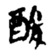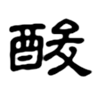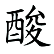 金文左從酉,酉像酒罈之形,是「酒」的初文,表示與酒的釀製過程相關;右從夋聲,表示音讀。是右形左聲結構的形聲字,戰國以後,「酉」上紋飾不一,形體雖有變化,皆像酒罈,並隸定為「酉」。篆文「夋」則上承金文,形變為上允下夊,構形則定型為左形右聲。篆文、隸書、楷書構形都從戰國文字而來。《說文・酉部》:「酸,酢(ㄘㄨˋ)也。从酉、夋聲。」本義是醋。「田」、「畯」義近通用,《說文》籀文酸字從酉、畯聲。「夋」、「畯」都是不示義的聲符。在六書中屬於形聲。教育部標準楷書作「酸」,右下從「夊」,大陸規範字作酸,右下從「夂」。