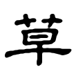 此字始見於《睡虎地秦簡》。字從艸、早聲,在六書中屬於形聲。《說文》:「草,草斗,櫟實也。一曰,象斗。」徐鉉注:「今俗以此為艸木之艸,別作皁字,為黑色之皁。按,櫟實可以染帛為黑色,故曰草,通用為草棧字,今俗書皁或从白从十,或从白从七。」段注:「按草斗之字,俗作皁、作皂,於六書不可通。象斗字當從木部作樣,俗作橡。」字作為草木之草的泛稱,則為艸、屮字的分化;如作為「草斗」之專名,則自有獨立的本音本義。隸、楷字形可上溯戰國文字。