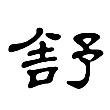 」,又與上部之「余」相合而誤作「舍」,成為從予、舍聲之形。「舍」為房屋,於此作為不示義的聲符,表示音讀。隸書、楷書皆與篆文同形。在六書中,金文及戰國文字屬於形聲兼會意,篆文、隸書及楷書字形則屬於形聲。