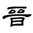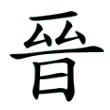 字從二倒矢、從日,像矢疾進射日之形。甲文有晉字,但屬殘片,無法確認字的用法。金文用為國族名。《曾侯乙墓簡》用為兵械杸的修飾語。明確的用為疾進意的,始見篆文。《說文》:「晉,進也。日出而萬物進。从日从臸。」段注:「凡進皆曰晉,難進亦曰晉。」隸書字形有承篆文,有已訛變。楷書字形從隸書再形變而來。