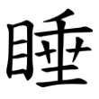 此字始見於篆文。篆文及楷書字形皆從目、垂聲。「目」為人眼,作為形符,表示義與眼睛有關;「垂」為邊疆偏遠之處,由中央至邊疆,是由上至下,故引申而有由上往下掉落之意,於此作為示義的聲符,表示音讀。在六書中屬於形聲兼會意。
