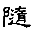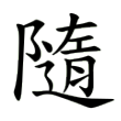 此字始見於戰國《睡虎地秦簡》,僅一見。字從辵、隋聲。唯秦簡字通惰,與隨從意無涉。字明確用為隨從意,始於篆文。《說文》:「隨,從也。」段注:「行可委曲從迹,謂之委隨。」隸楷以後字形均承篆文而來,唯辵旁加插於字中。在六書中屬於形聲。大陸規範字作随。
