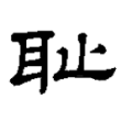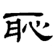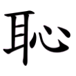 ,改心為止,以強調字音,成為有聲無形的二聲字。標準字作恥,大陸規範字作「耻」。