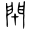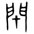 」。從門,示門之部件。戰國文字承自金文第二例。篆文以下皆從才,示歫門之義,此據比擬義構字。在六書中屬於異文會意。