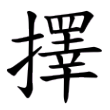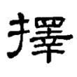 金文從廾、睪聲,或從又、睪聲。戰國文字改從手、睪聲。篆文、隸書、楷書同戰國文字。從「廾」或「又」或「手」為義符,表示是手部的動作(「廾」、「又」都同樣是手);從「睪」為聲符,可以看成有兼義功能,依《說文》,「睪」的本義為「司視也」,就是偵察,有仔細察看的意思,「擇」是要用心地挑,當然要仔細地察看,因此從「睪」聲可以有兼義的功能。此字在六書中都屬於形聲兼會意。