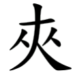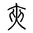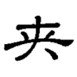 甲骨文、金文、戰國文字及篆文,均從大,左右有二人相夾持之形。隸書則將左右的二人變易筆勢,並連筆而成一橫畫,楷書又回復二人的形體。在六書中屬於異文會意。大陸規範字作「夹」。