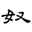 金文「奴」字從又執女,表示以手抓著一個犯罪的女人,因此本義是女奴隸。在六書中屬於形聲兼會意。戰國文字、篆文、隸書、楷書都繼承甲骨文的寫法。
