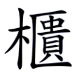 此字晚出,始見於楷書。楷書字形從木、匱聲。「木」為樹,作為形符,表示義與木有關;「匱」為收藏衣物的家具,於此作為示義的聲符,表示音讀。在六書中屬於形聲兼會意。大陸規範字作「柜」。