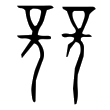 甲骨文字形從二人並列,像爭逐的樣子,人上的「