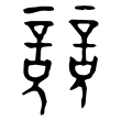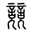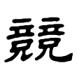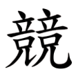 」,而為隸書及楷書字形之所本。篆文字形或本於金文而以為從二人、誩聲。「誩」為爭辯,有爭逐意,故於此作為示義的聲符,表示音讀。在六書中,篆文字形屬於形聲兼會意,其餘字形則屬於會意附加實像。大陸規範字作「竞」。