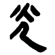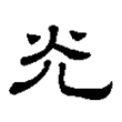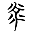 甲骨文從人跽坐,首上頂戴火炬形,強調照明、照遠。在六書中屬於異文會意。戰國文字改從人,篆文改從儿。隸書則改從人或從儿,又從火的偏旁形變,已失火形。