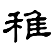 稚本為稺的俗字,二字皆晚出,稺始見篆文,稚則見於漢代隸書。稺的形構從禾、屖聲,稚從禾、隹聲。從禾,表示與稻禾相關;屖聲、隹聲,皆表示音讀,以音同、音近之聲符相代換,並不影響字義,乃文字衍化之通例。隸變作