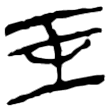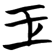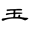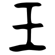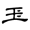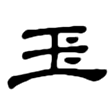 ,右側多了一點或兩點,是為了和「王」字有所區別。楷書沿自隸書第一例而定體。《說文》古文作