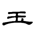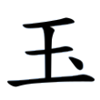 像串玉呈半圓的樣子,不失玉之形體。戰國文字一、二例多了飾畫,不影響其音、義;第三例顯然承自金文,最為簡明,為篆文玉之所本。字經隸書,形變作