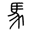 ,以直式呈現,上像有眼的馬頭,中像身,下像尾,左像兩腳,右像鬃毛,屬象形。金文三例,第一例承自甲文之形,只是身子純用線條表現而已。第二例改變較多,然大抵不失有頭、身、四腳和鬃毛。第三例保持頭、眼、鬃毛,餘以兩橫畫示意,顯失其形。戰國文字二例,第一例和金文第二例近似;第二例和金文第三例一致。篆文