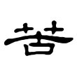 此字始見於篆文,字從艸、古聲,在六書中屬於形聲。《說文》:「苦,大苦,苓也。」段注:「大苦何物,曰:沈括《筆談》云:『《爾雅》:『蘦,大苦。』注云:蔓延生,葉似荷青,莖赤,此乃黃藥也。』」其味極苦。謂之大苦。苦為五味之一,引伸為勞苦。」隸、楷字形均承篆文而來。