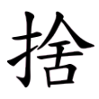 此字始見於篆文,從手、舍聲。楷書同。字從「手」為義符,表示是手部的動作;從「舍」為聲符,不兼義,依《說文》,「舍」字本義為「市居」,就是城市中的房舍,此義與「捨」無關。在六書中屬於形聲。
