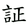 此字始見於篆文。篆文從言、正聲。楷書同。「証」的本義為勸諫督正,勸諫督正必需用言語,因此「証」字從「言」表義;從「正」聲有兼義的功能,「正」的本義是督正、糾正,「証」要勸諫督正別人,當然要用「正確」的道理、方法。在六書中屬於形聲兼會意。